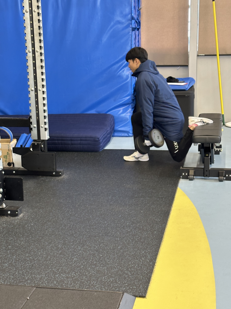 ウエイトトレーニングでは、重さを追い求めるのではなく、軽量でスピードを意識した瞬発的な動きを重視しました。